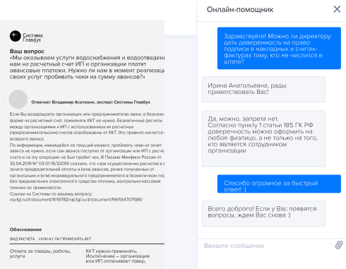 В «Системе Главбух» всегда можно найти актуальную информацию в доступном и наглядном виде и оперативно получить ответ на интересующий вопрос. Спасибо команде «Системы Главбух».